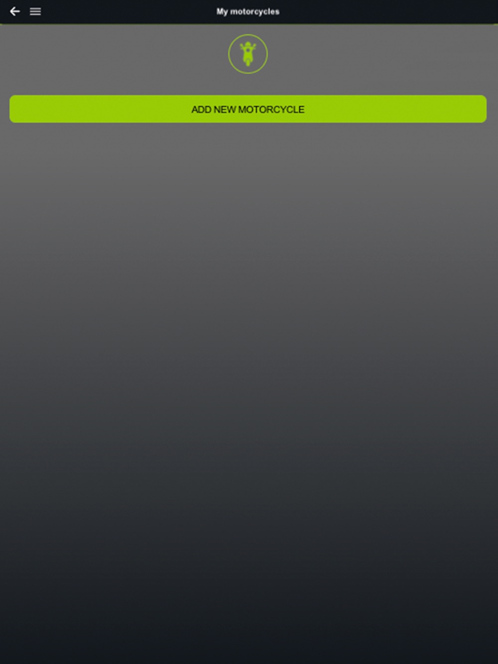 My motorcycle enables access to registered motorcycles or allows the user to add a new motorcycle.