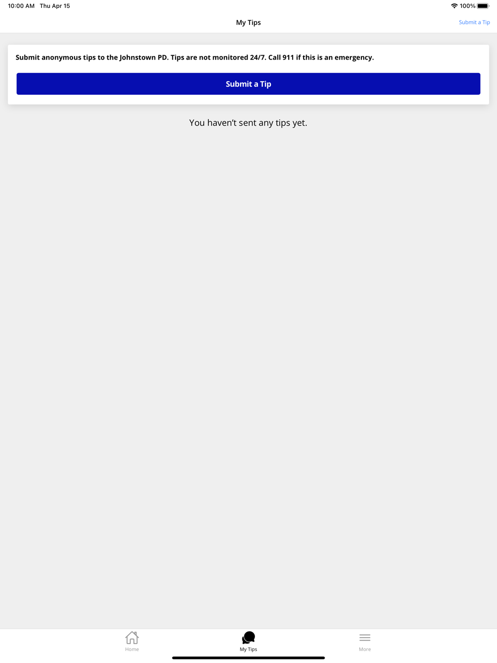 The Johnstown PD app provides citizens the ability to submit anonymous tips to the Johnstown, PA Police Department. The app also displays agency crime alerts, and other organization web and social media content.