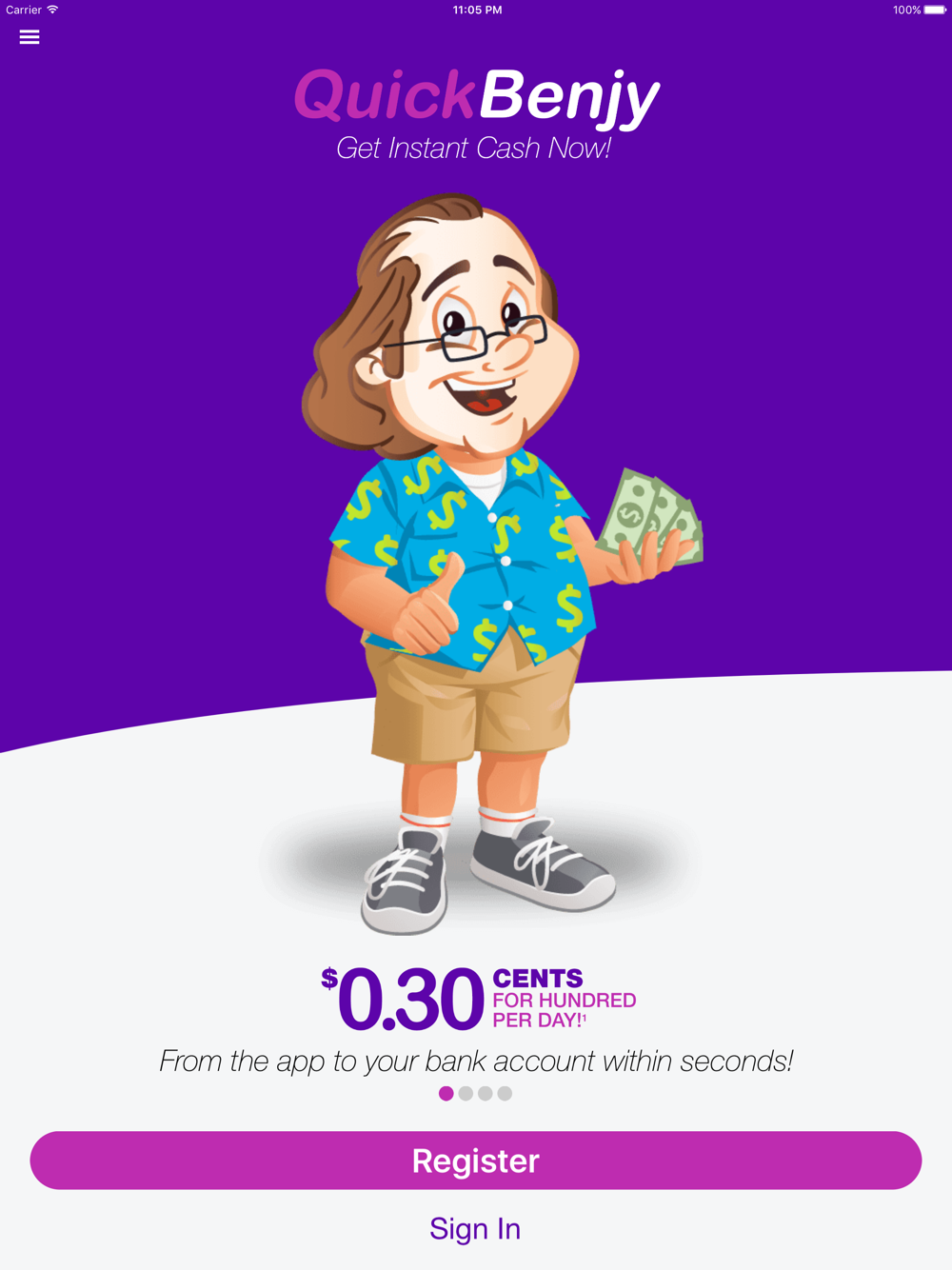 Quick Benjy: Get Instant Cash Now! Pay only for the days you need it.