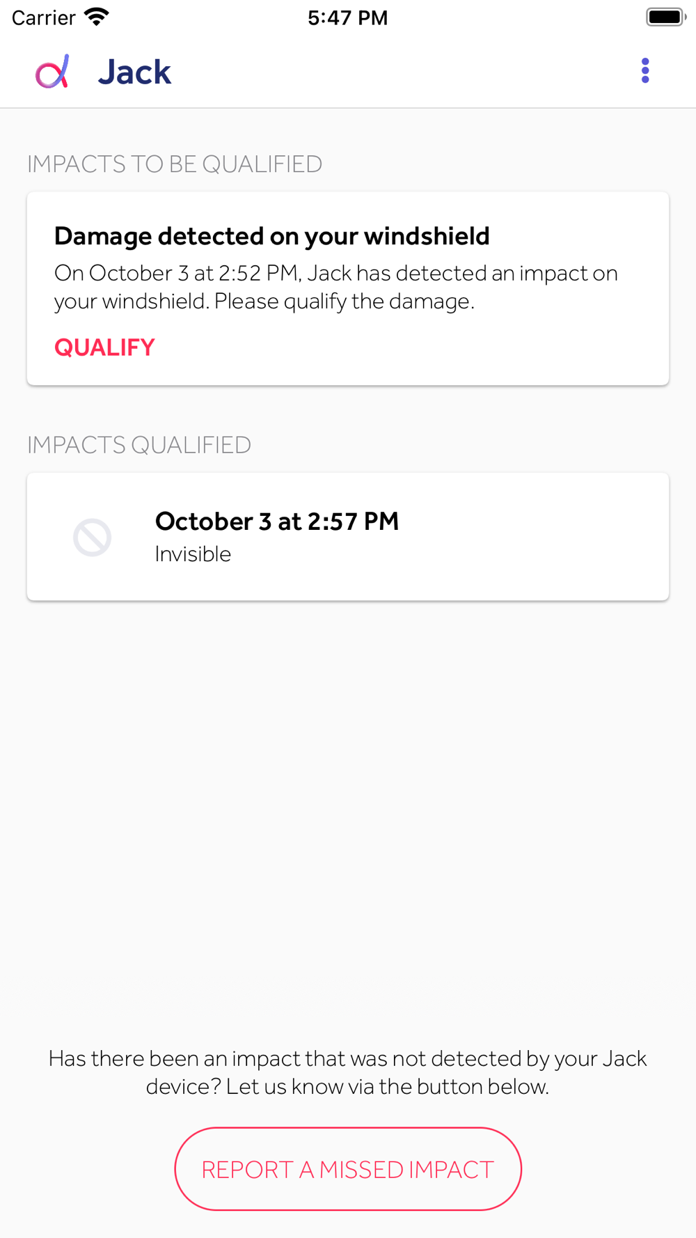 Replacing damaged windshields accounts for 90% of your glass maintenance costs and it’s getting worse with the increasing prevalence of ADAS in vehicles. Jack is the first solution to effectively address that concern. By detecting, diagnosing and notifying glass damages in real-time, Jack makes sure you don’t miss any breakage, you handle them on time and mitigate your glass maintenance costs by 50%, or more. Not only that, Jack also improves: the quality of your service, the productivity of your staff, the safety of your drivers and your carbon footprint. In short, Jack is your next step towards safe and profitable mobility.