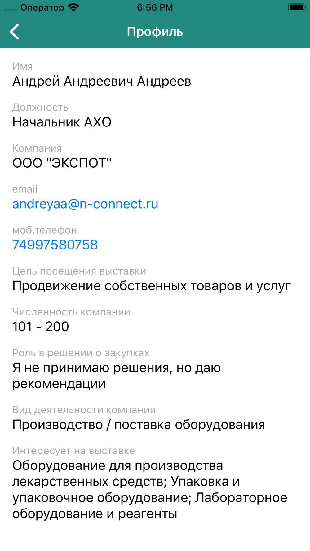 Формирование базы контактов по менеджерам, которые работали с посетителем стенда.