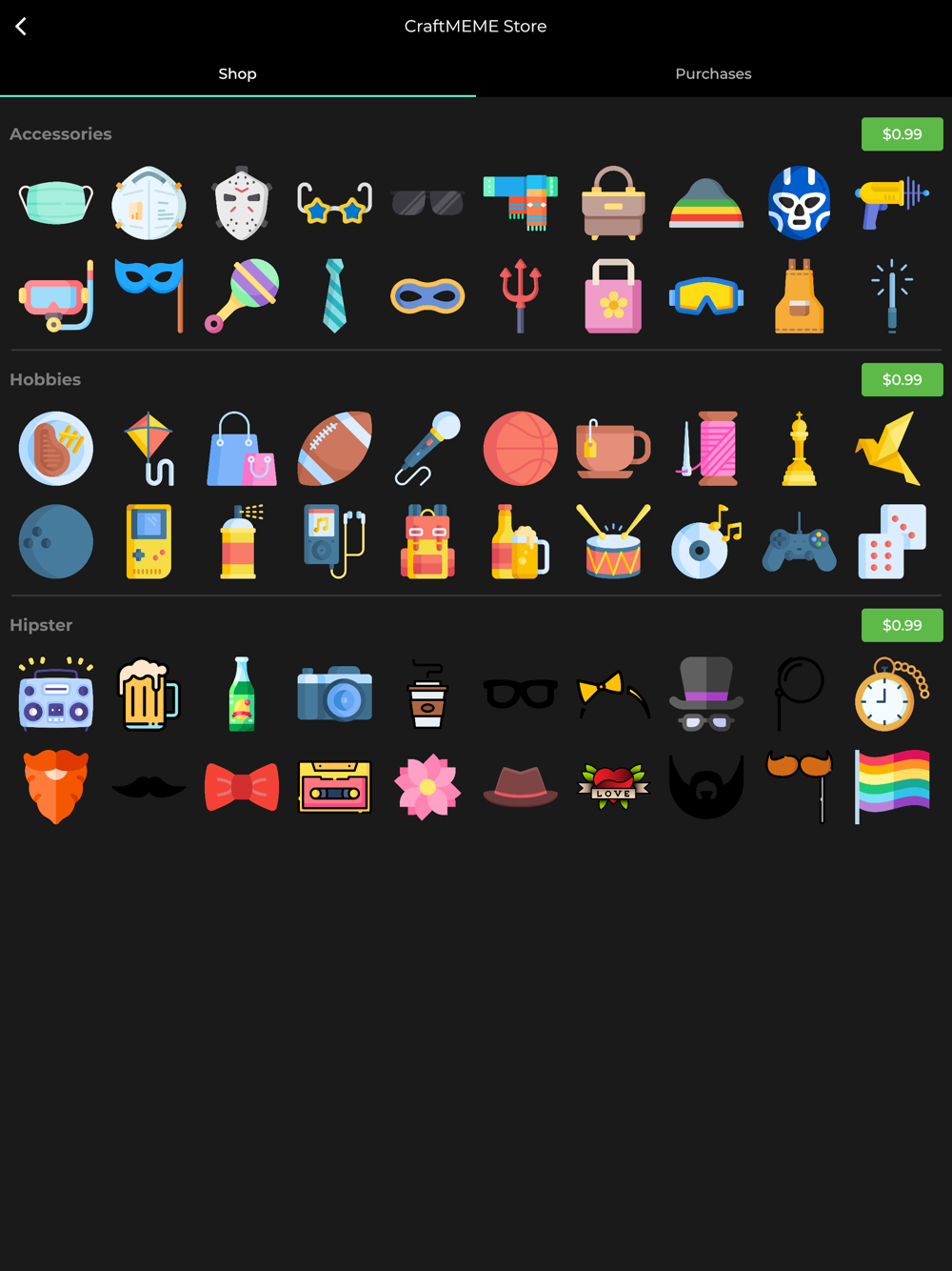 - Purchase additional sticker packs and jazz up your memes!