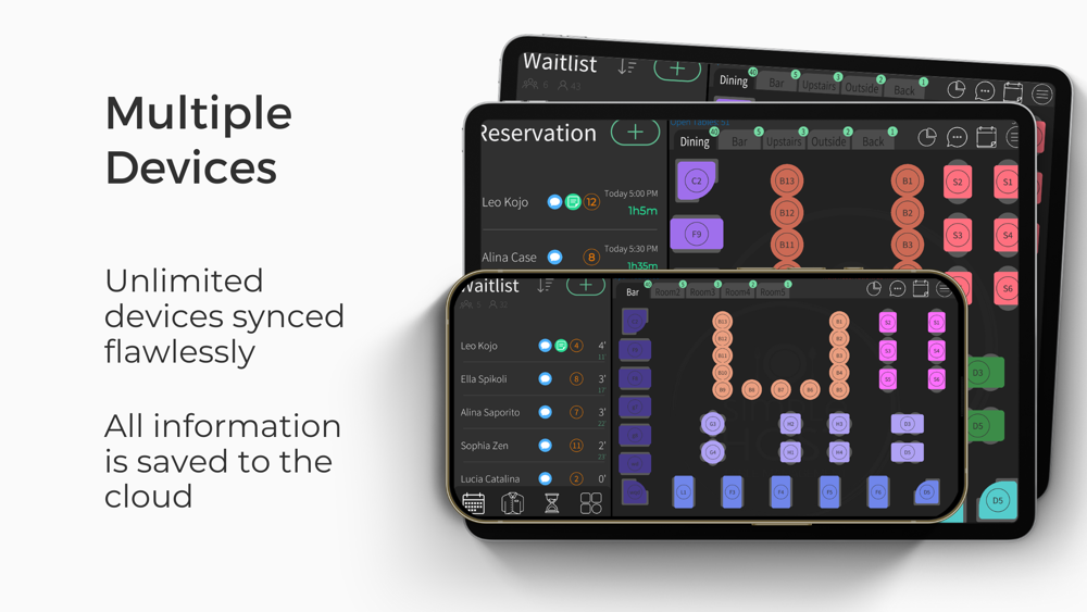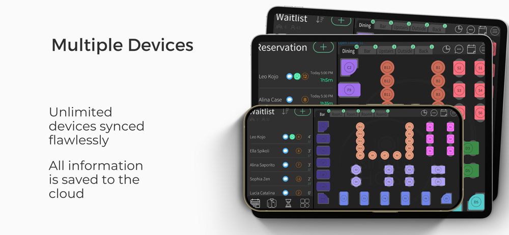 For restaurant owners, by restaurant owners. The most important aspect of a restaurant application is reliability. That's why we chose the top-end cloud database to save and sync all of your important information, such as your reservations.