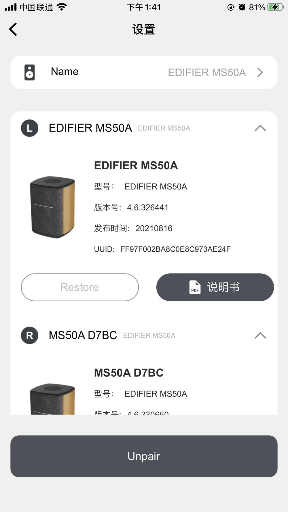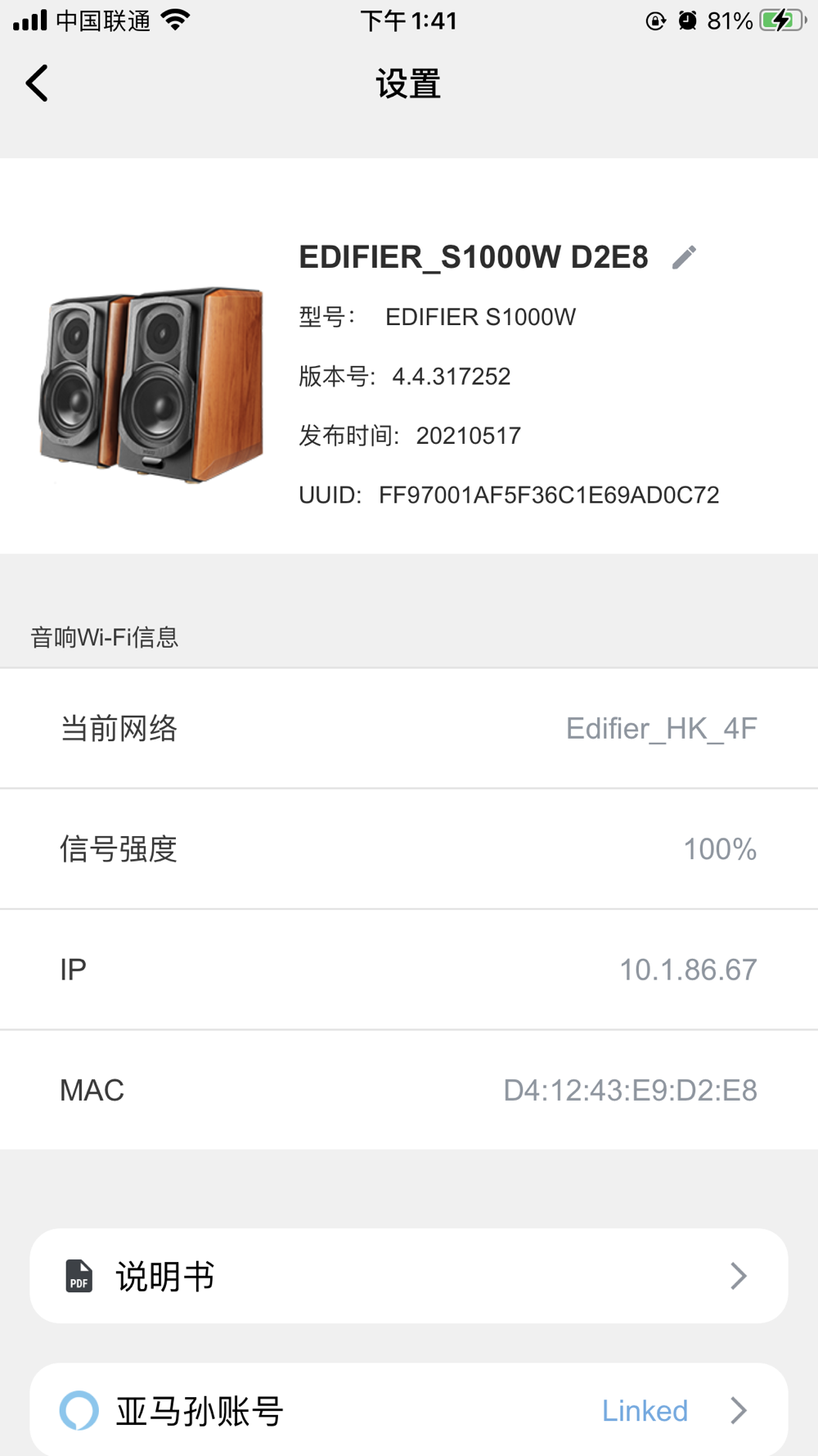 Device configuration: the device will display in the device list once connected to the network. Operate the settings button for device rename, device information, input audio source switch, account management and online music authorization;
