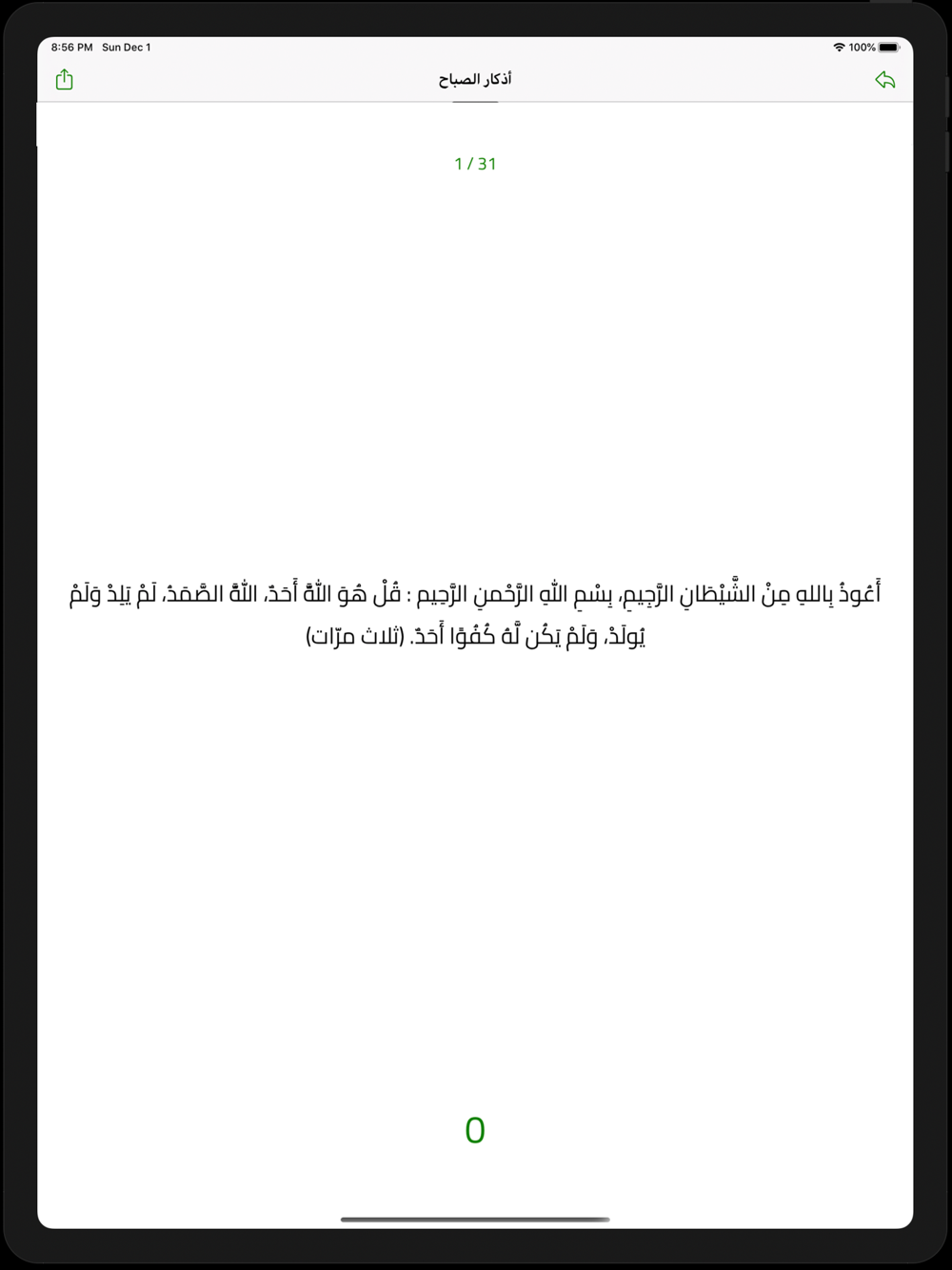 ١- مسبحة إلكترونية مع قائمة بعدد التسابيح مفصلة
