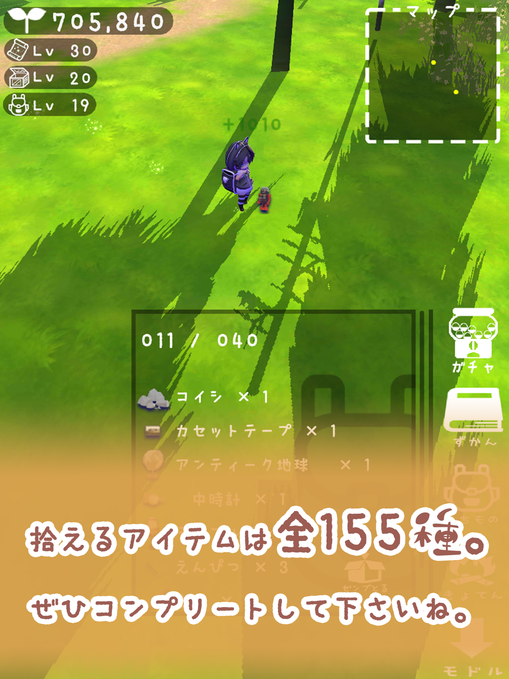 拾えるアイテムは全100種。ぜひコンプリートして下さいね。