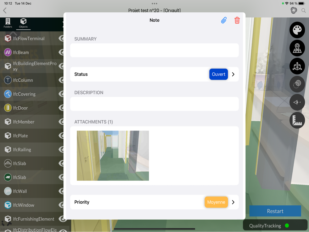 Bloc in Bloc speeds up iterations and promotes better decisions. With augmented reality visualization of your openBIM models, you'll be able to collaborate on site, or from your desktop. You can use our solutions to bring all your data to the field.