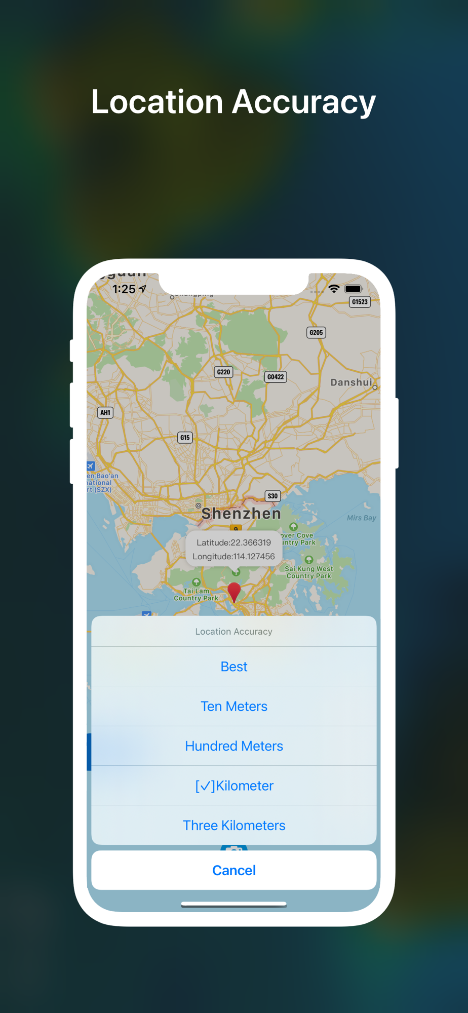 - Set the accuracy of the location data