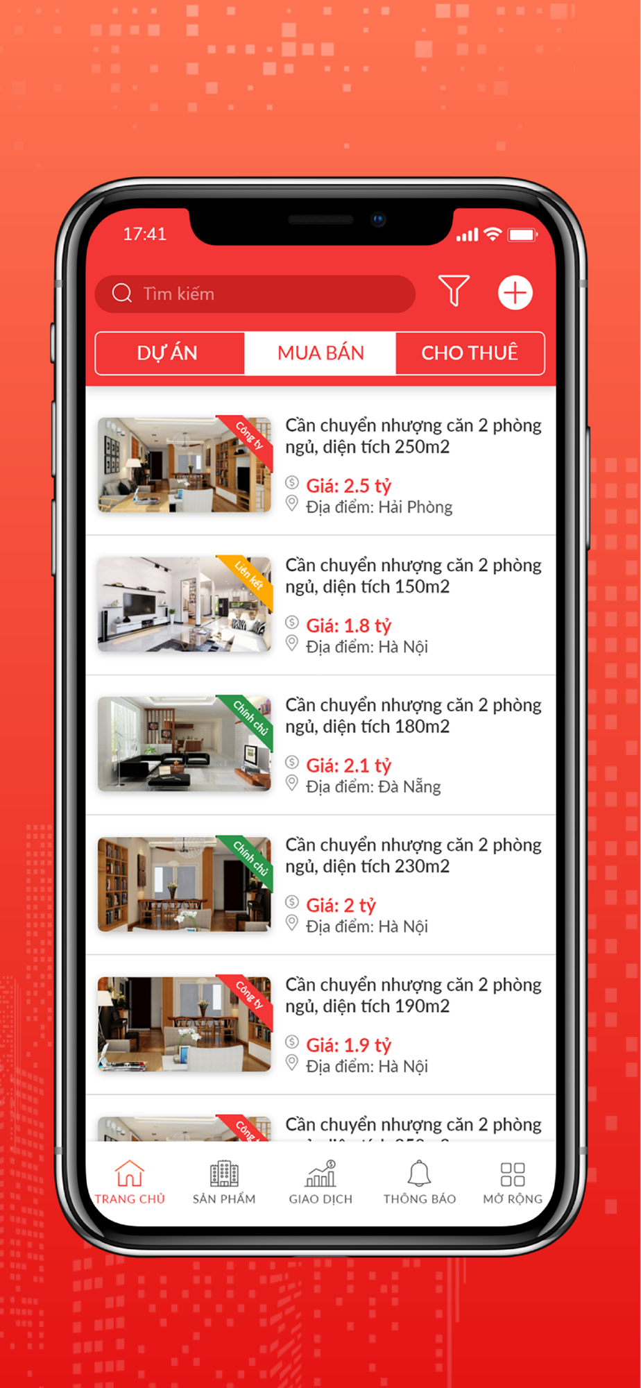 Một ứng dụng tiện lợi và nhỏ gọn giúp bạn tìm kiếm nhanh chóng, đầy đủ và chính xác nhất mọi thông tin về bất động sản tại Việt Nam.