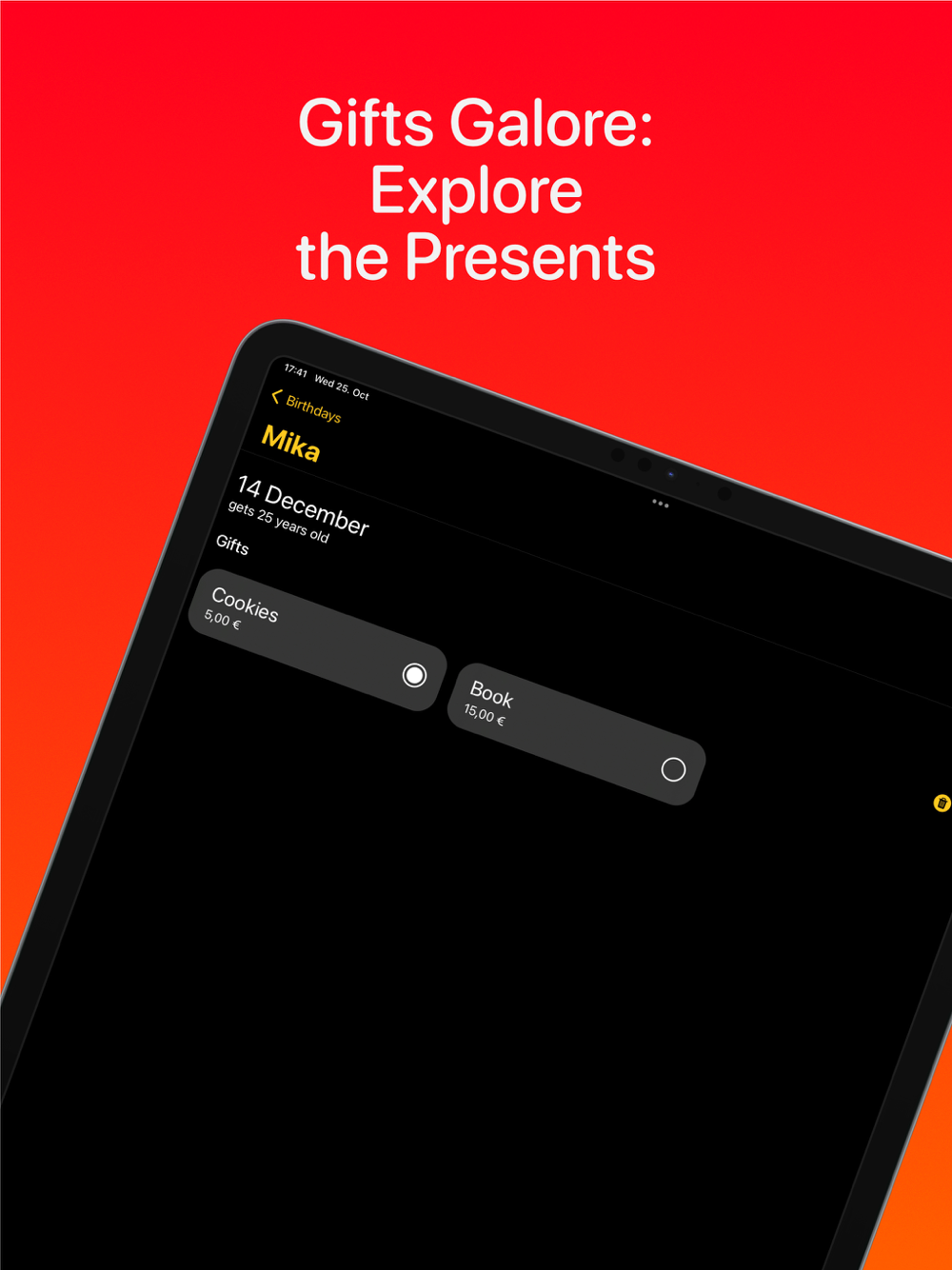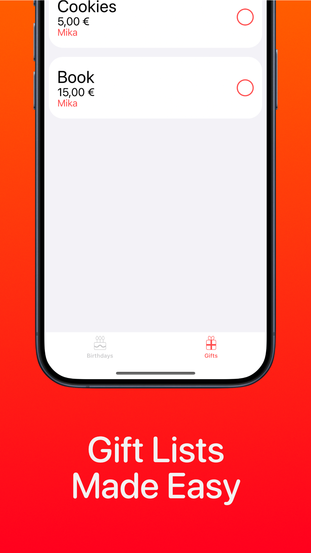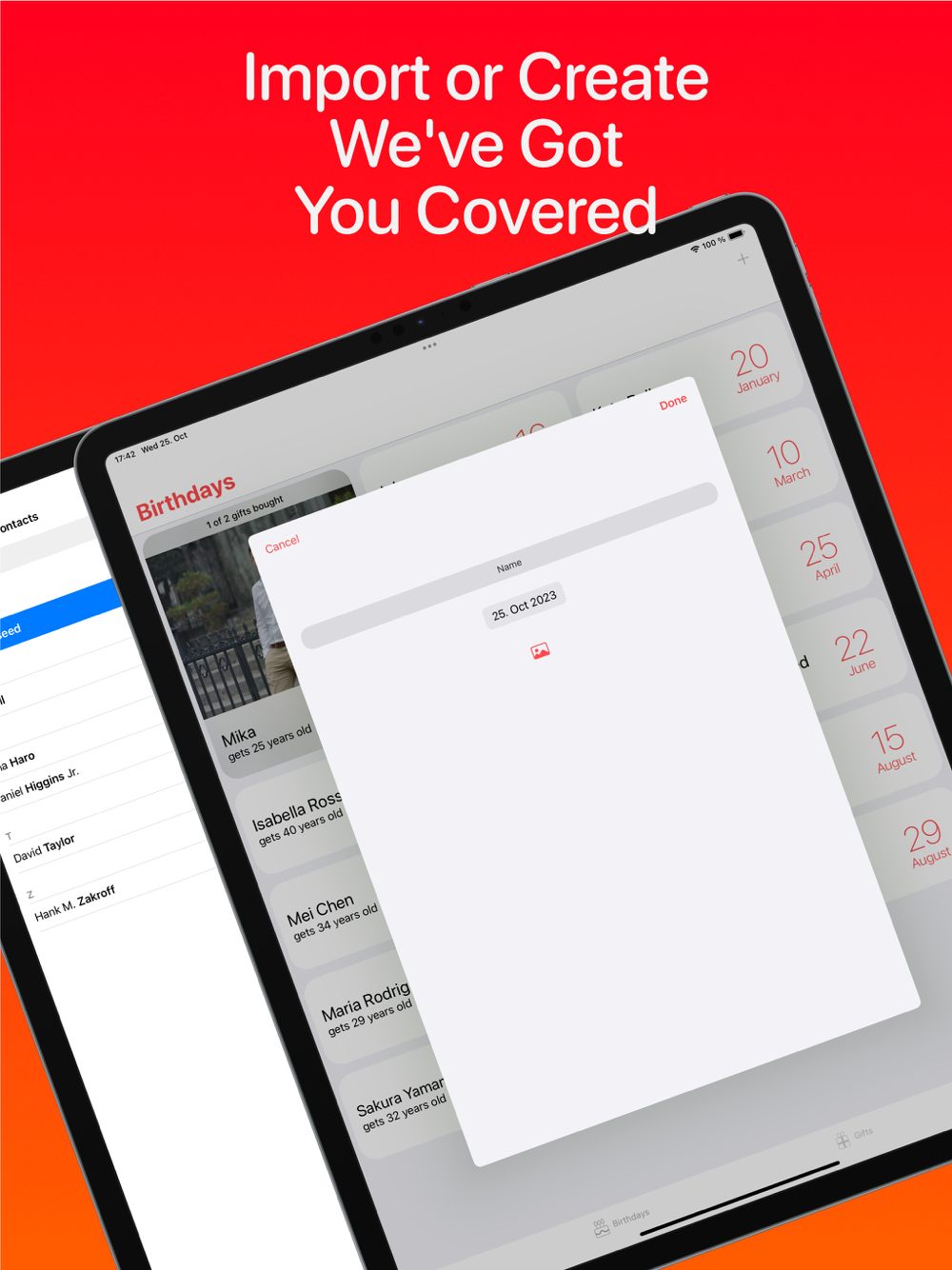 Seamlessly manage your contacts' birthdays or create personalized events. Keep track of gift ideas with custom gift lists, and receive timely reminders to ensure you never miss an important date.
