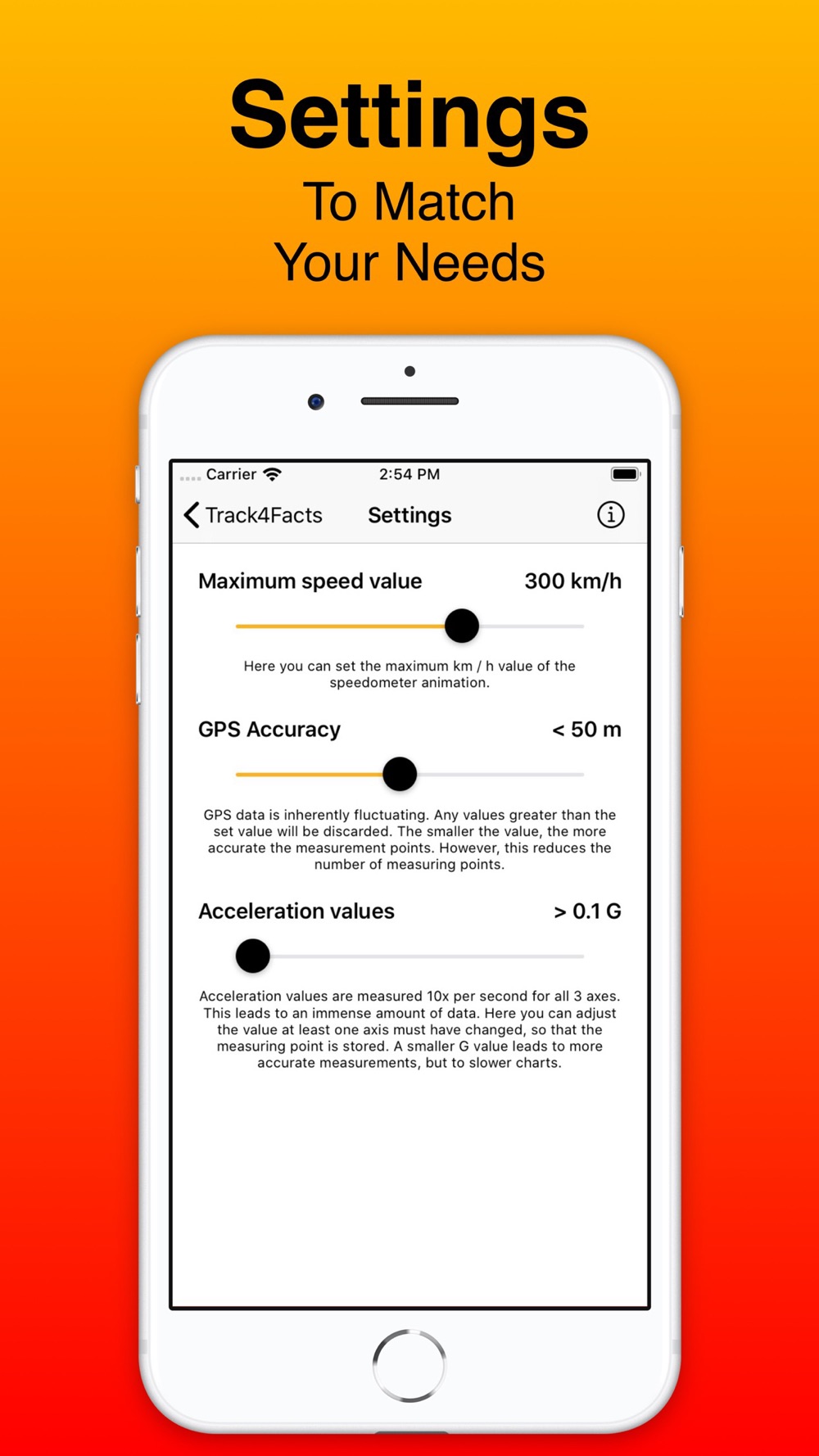 The app helps you to record your driven route and also shows you some interesting analysis, such as current speed, maximum speed, distance, duration, average speed, fastest acceleration time from 0-30 / 0-50 / 0-100 km / h, acceleration forces, completed altitude and the number of stops.