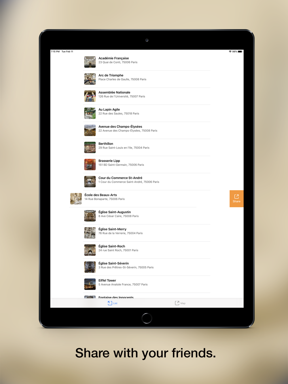 * SHARE Share that place with friends.