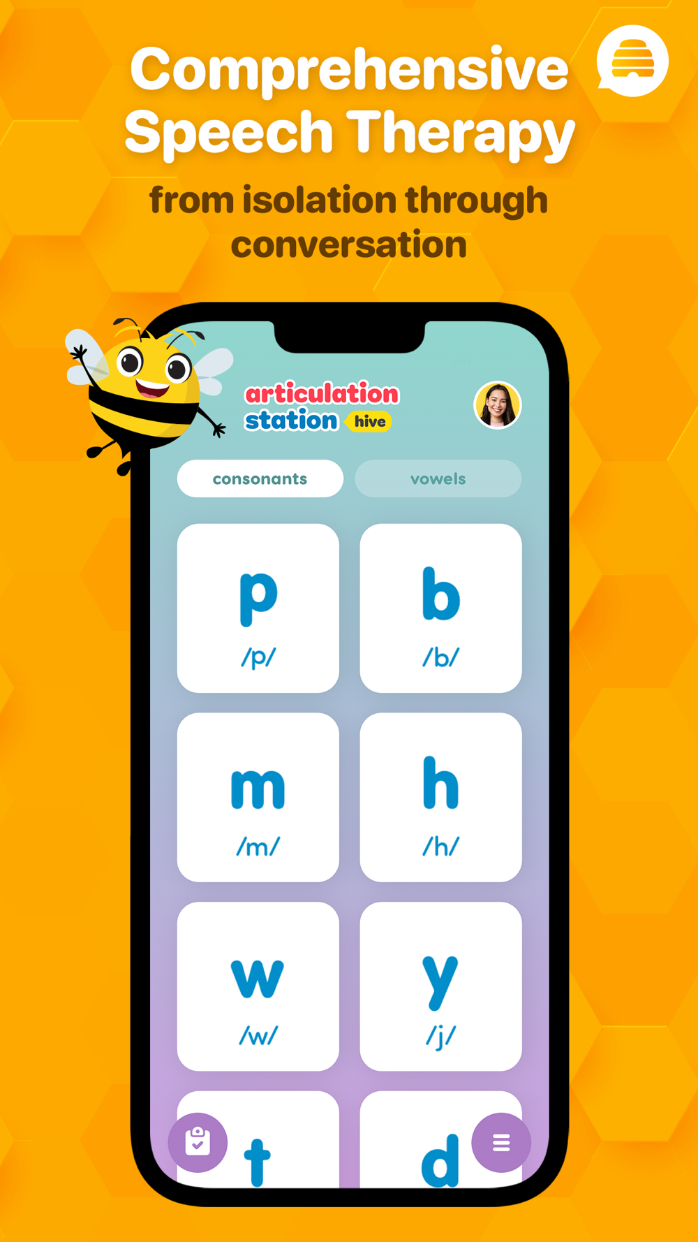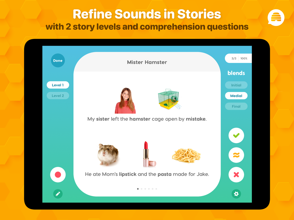 Articulation Station Hive is the most comprehensive speech therapy app on the App Store. It has all the tools and activities needed to teach learners of all ages how to speak more clearly. To start with, it has 17 different activities to target speech in both consonants and vowels from the isolation level through the conversation level.