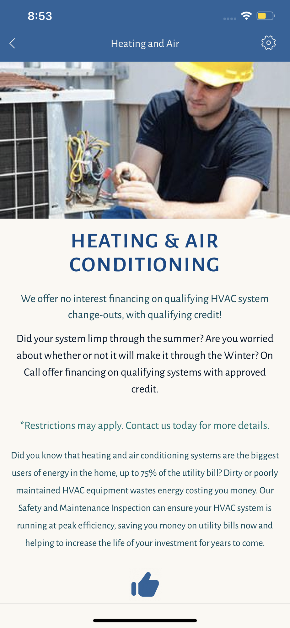 Our mission at On Call Plumbing, Heating & Air is to provide a unique and exceptional service experience to each and every customer. Our company represents the best values of our employees: commitment, dedication, integrity, honesty, and faith. We know that you have many choices when it comes to your plumbing, heating and air conditioning service providers. We set ourselves apart from the competition by making your satisfaction our first priority. Here at On Call, we believe that the measurement of our success is not based upon sales figures but by fulfilling the expectations of each customer, one customer at a time.
