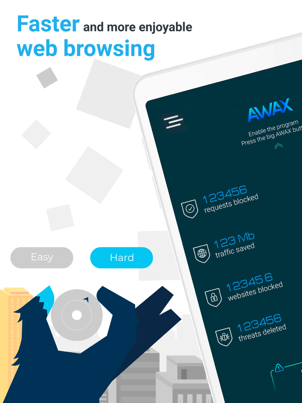 AWAX - Safari Ad Blocker, our hero AWAX Kong decided to protect your phone from annoying ads and speed up the Safari browser)))