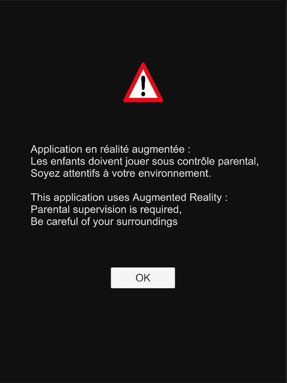 Après avoir ouvert l'application ("Découvrez la 3D") et lu le message d'avertissement, la caméra de votre smartphone est animée. Visez l'une des cibles et le contenu en réalité augmentée apparaît.