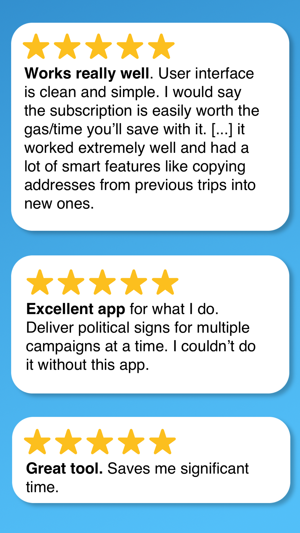 • Add up to 25 destinations per route