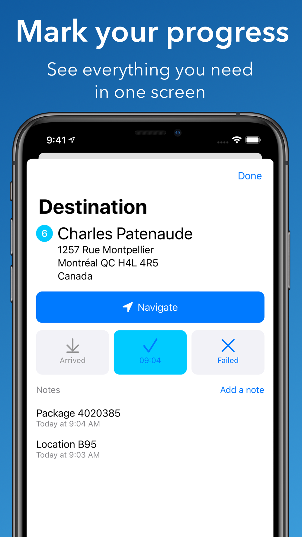 Make your delivery route more enjoyable with this app. Create a list of stops ("destinations"), order them (or let the app find the best route) and mark them as done as you go. All in a delightful simple UI that doesn't get in your way.