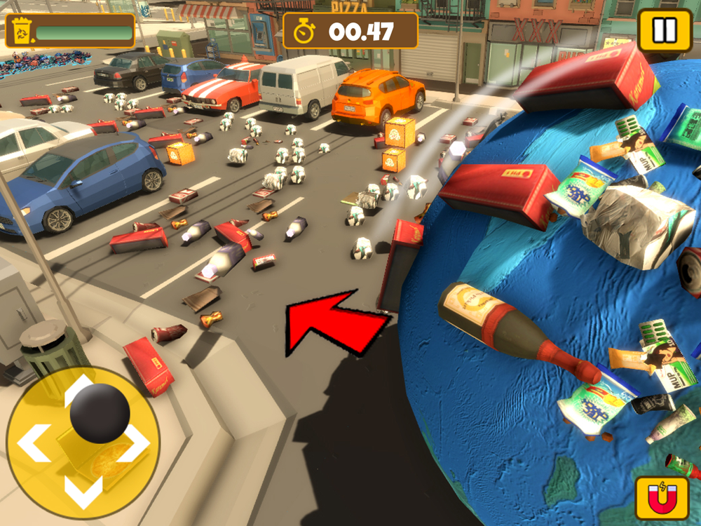 - Use Magnet Power to collect all trash and waste far away from the ball