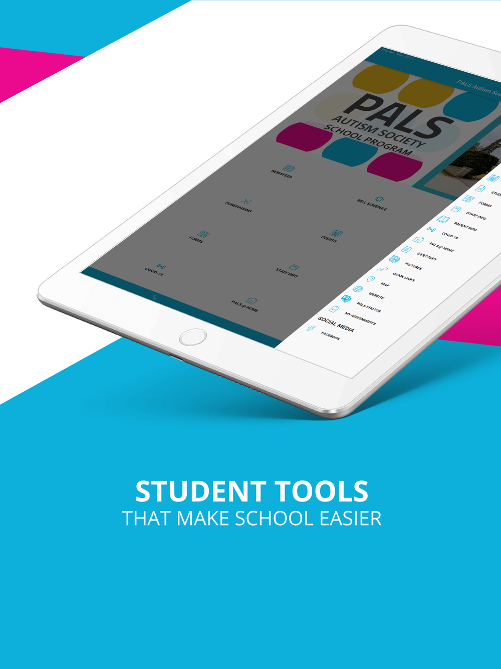 The PALS Autism School app by SchoolInfoApp enables parents, students, teachers and administrators to quickly access the resources, tools, news and information to stay connected and informed!