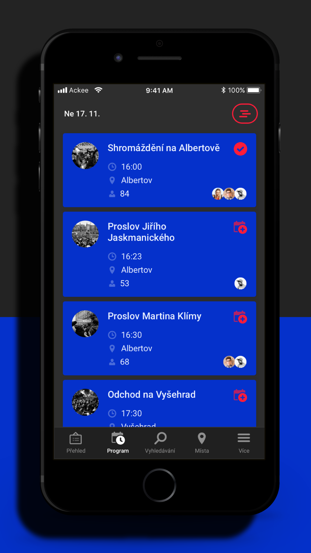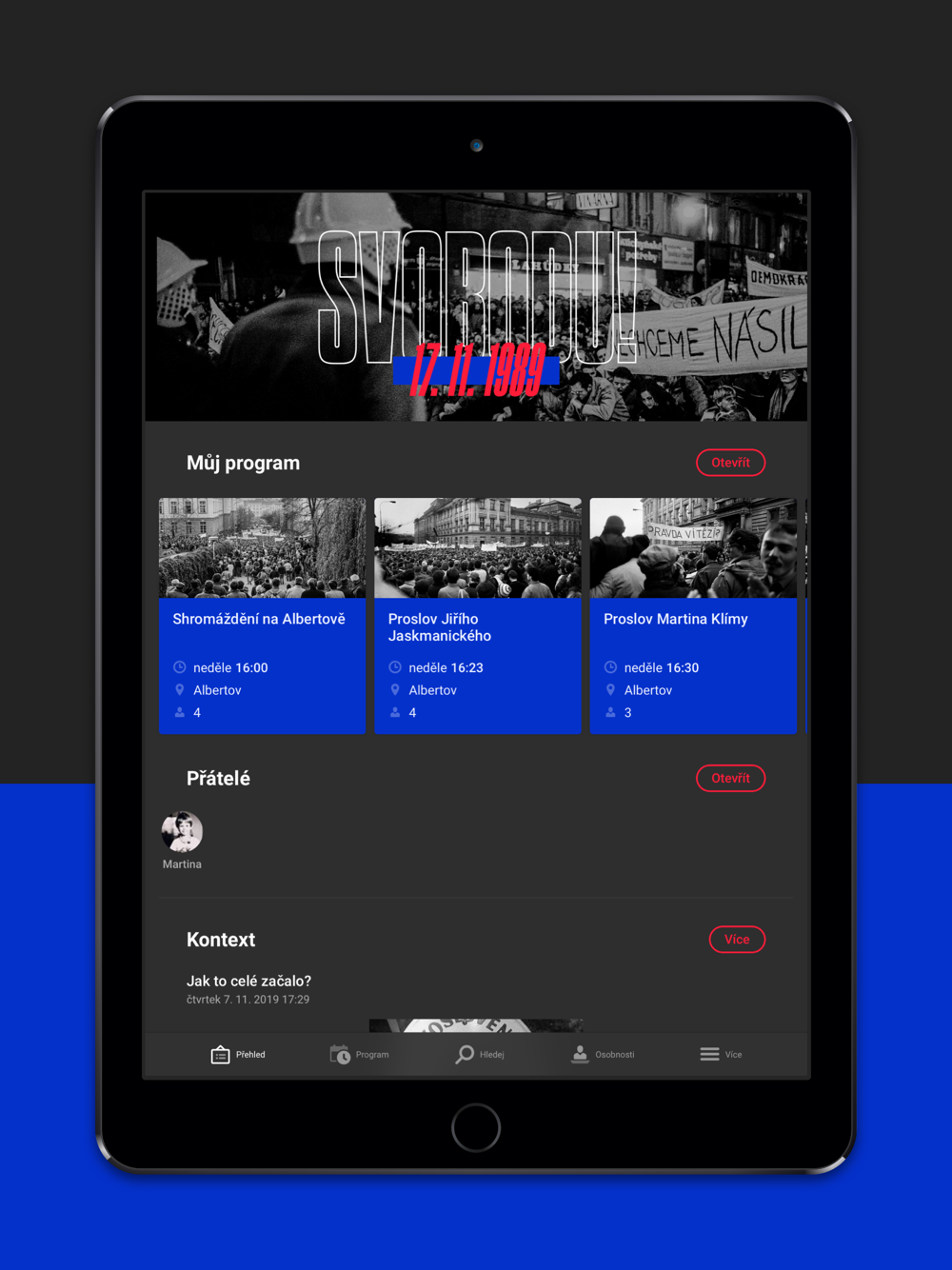 Ať už jste 17. listopad 1989 zažili na vlastní kůži, nebo ho znáte jen z vyprávění, připomeňte si tento přelomový den minutu po minutě. Klíčovými okamžiky vás provedou studenti Alena a Jan, díky nimž se na jeden den přenesete zpět do roku 1989 a pocítíte jeho neopakovatelnou atmosféru. Stáhněte si aplikaci a vydejte se na cestu, která Čechy a Slováky dovedla k vytoužené demokracii.
