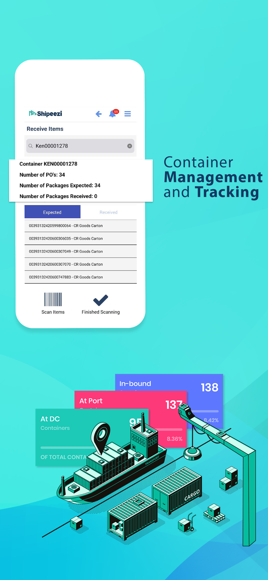 Manage your Products from supplier to destination by tracking the Purchase Order inline with Shipping, Warehousing and despatch. Control SKU pack (TiHi) Configuration to optimise container stuffing and on-forward distribution.