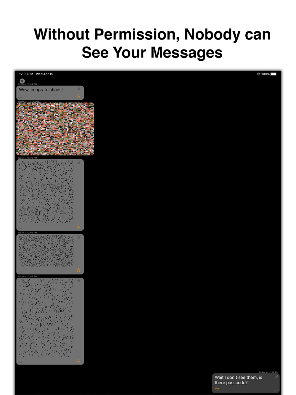 Shuffles convert your text message into an image, then splits into small 100 thousand pieces and shuffles them like a puzzle using the passcode you chose.