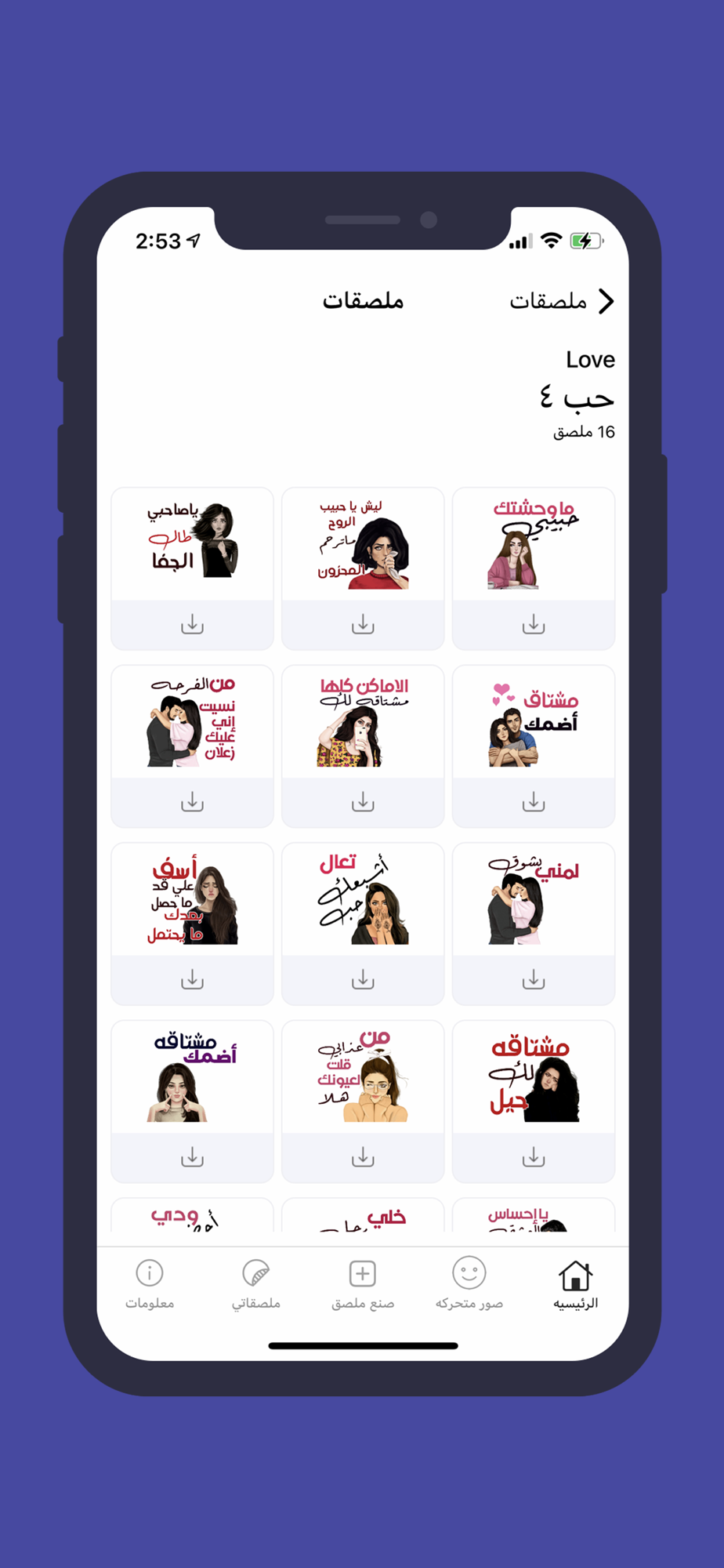 في التطبيق يوجد ميزة صنع ملصق خاص بك وكما يوجد ميزة رفع ملصق من هاتفك