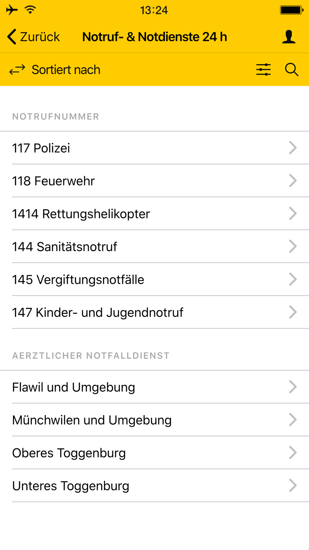 Notfall-App für die Region Toggenburg mit den Wahlkreisen Wil und Toggenburg des Kantons St. Gallen sowie der Bezirk Münchwilen des Kantons Thurgau
