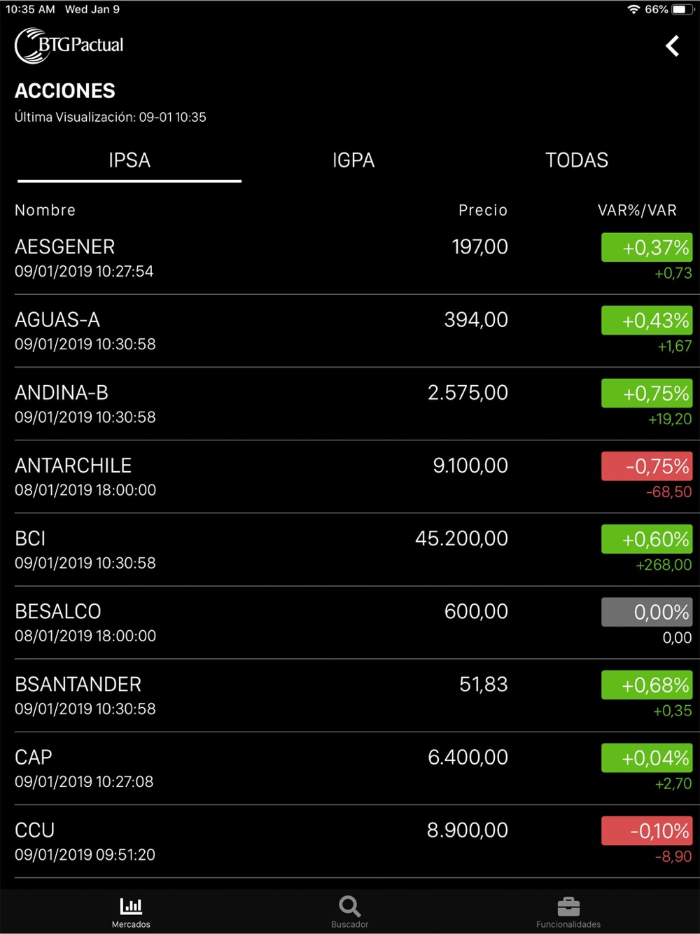 La aplicación para iPad y iPhone creada por BTG Pactual Chile es una poderosa herramienta de seguimiento financiero en línea cuyas principales características son: