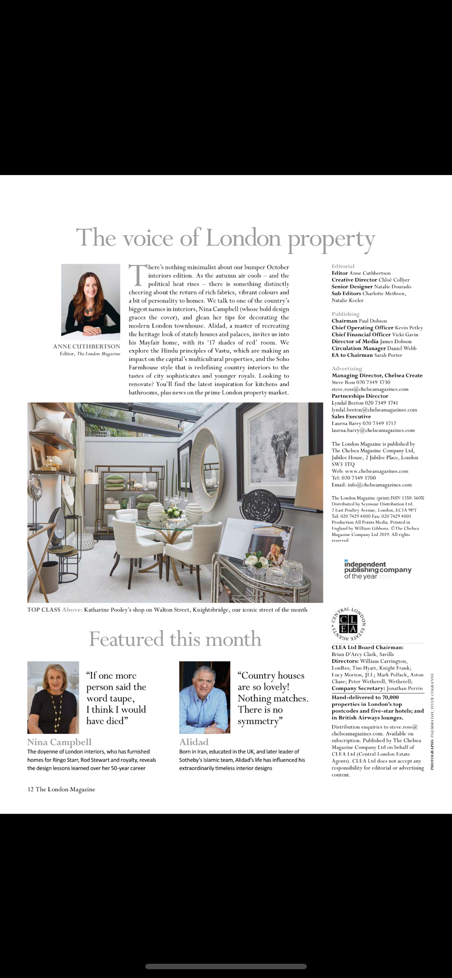 The magazine is a members’ title for CLEA (Central London Estate Agents), the capital’s most knowledgeable property experts. Every month, you will find essential advice for buyers, sellers and renters and market insights from our agents. In the magazine’s advertising directory you will find prime London’s most sought-after homes for sale and rent.