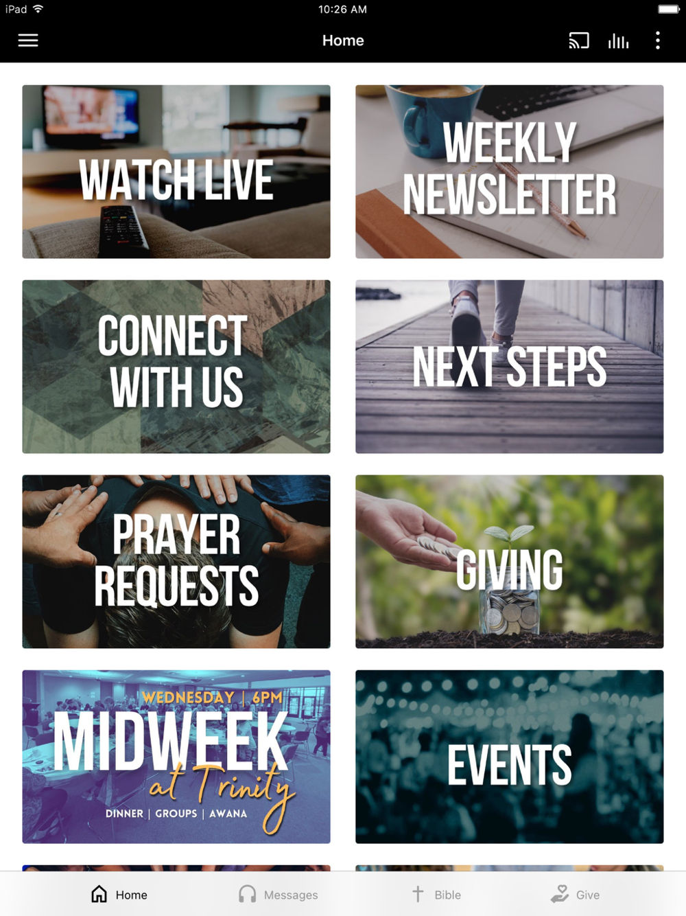 This app will help you connect and grow through everything we offer at our church. With this app you can: