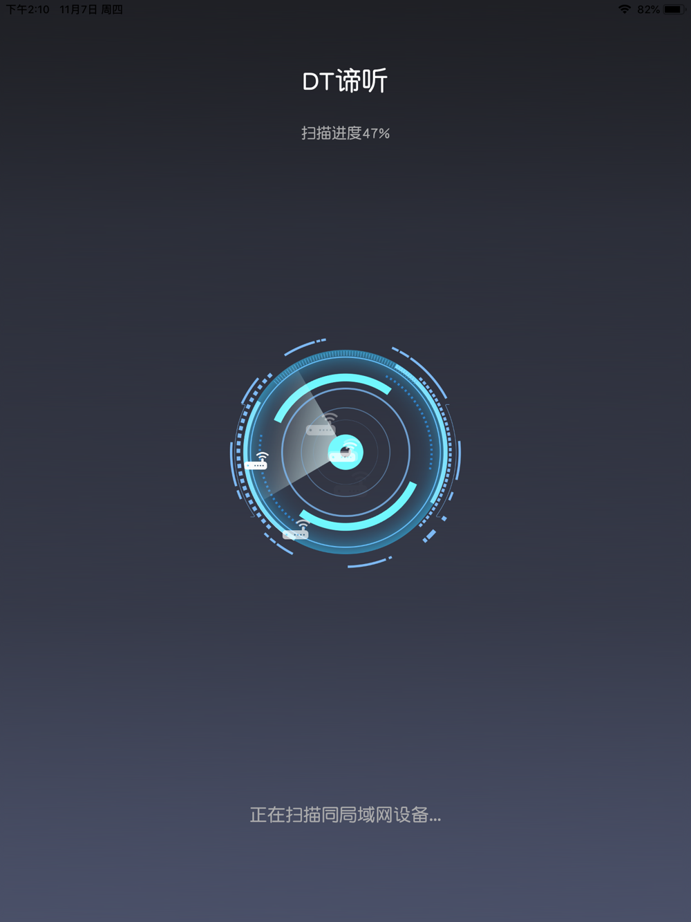 《DT谛听 - 无线设备探测》可以一键助您查询同WiFi下的连接设备,做到心中有数。只要点击“开始扫描”,即可轻松扫描出结果。