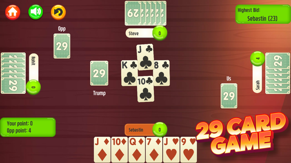 29 is a trick card game similar to other casino games like 28, Spades,28, Twenty Eight, and other similar games.