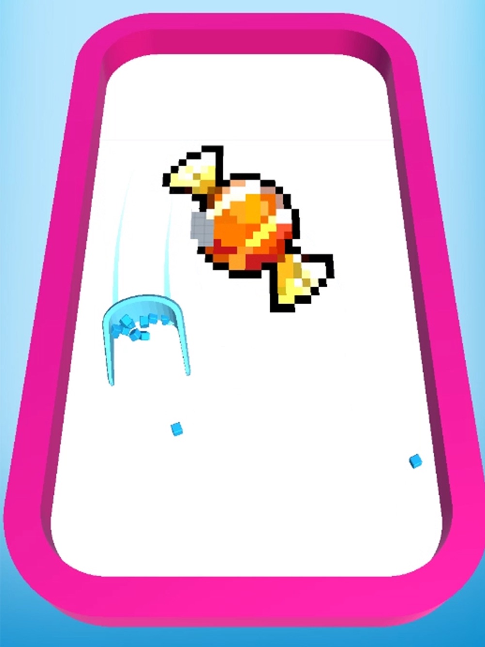 1、在游戏中你需要去收集很地面上的小方块,然后把这些小方块框起来,移动到对应的位置接成一块完整的图案。