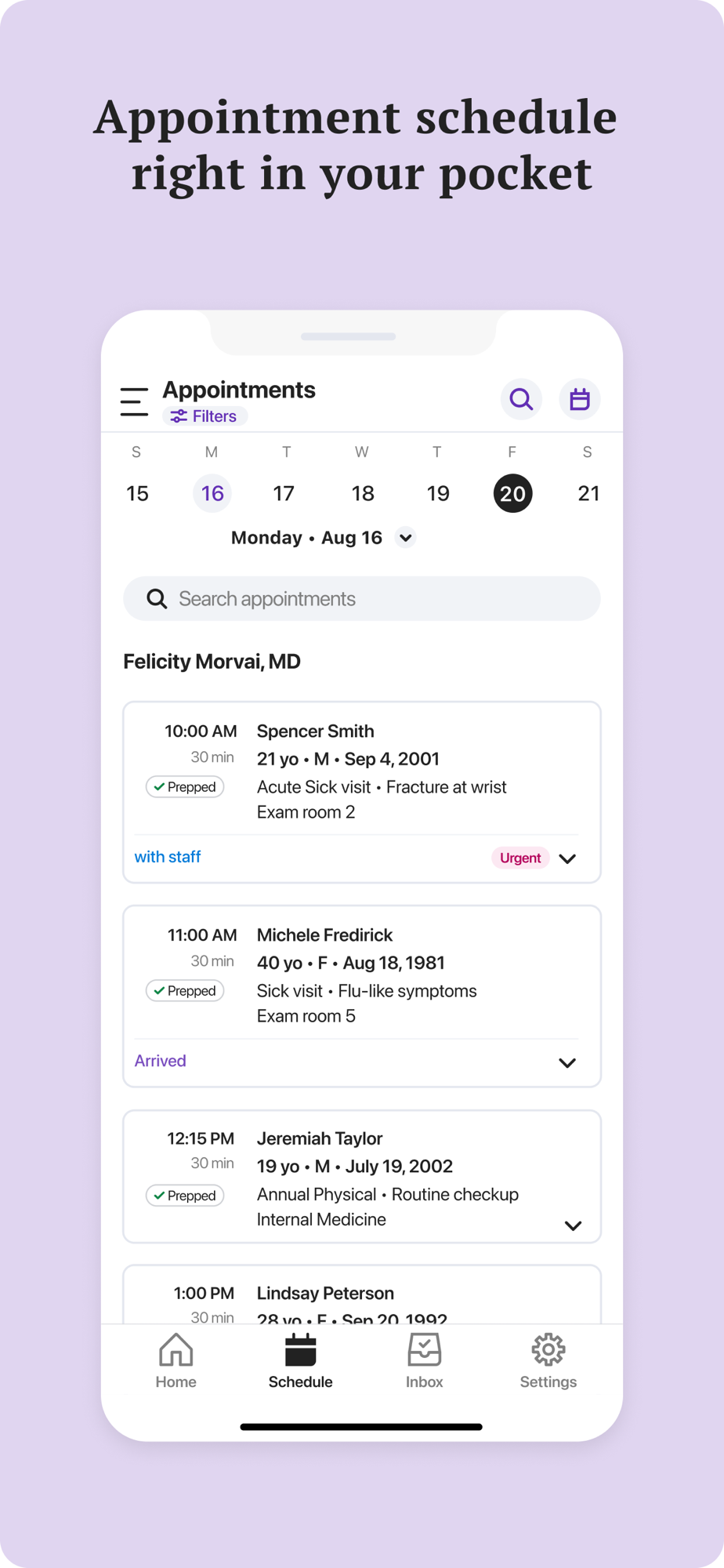 - Access your daily schedule