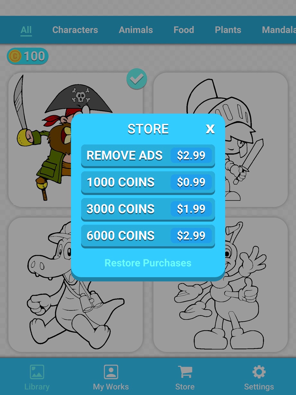 Categories and levels can be browsed through the Library screen.