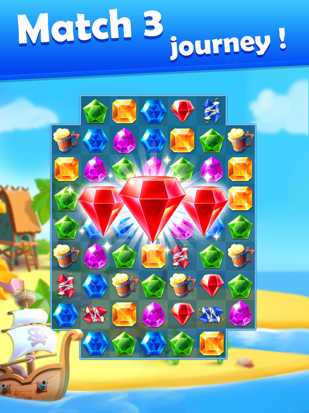 Jewel pirate, the sparkling puzzle adventure will instantly sate your wandering and craving for jewels quest, hunter treasures in match 3 puzzles.