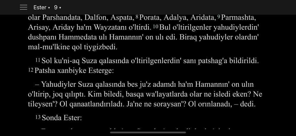 The Holy Book contains the Tawrat, Zabur, Injil, books of the prophets and some other books. Many of the people and some of the stories told in these books will be familiar to Central Asian readers. In addition to stories, the Holy Book contains poetry, proverbs and other kinds of literature. Called “the Bible” and similar names in other languages, it is the most widespread book in the world, and considered a cornerstone in world literature.