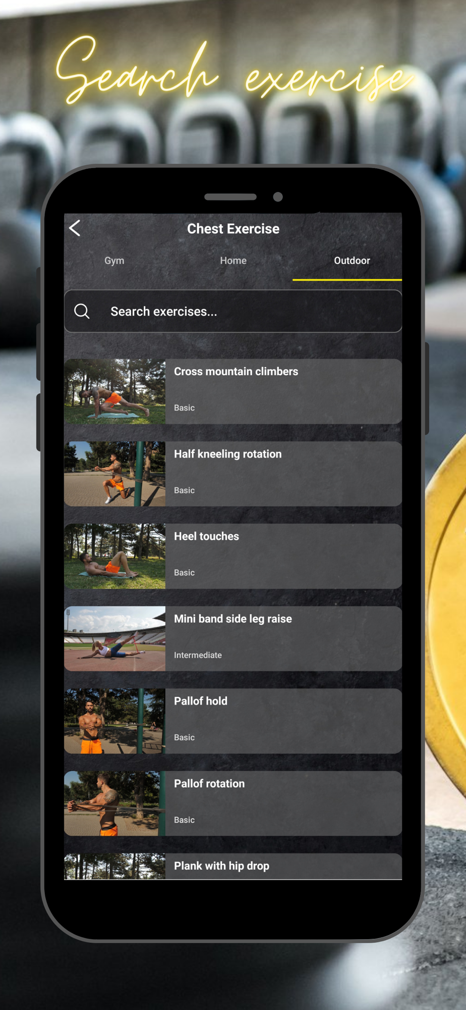 • Training programs based on your workout environment - at home, at gym or outdoor