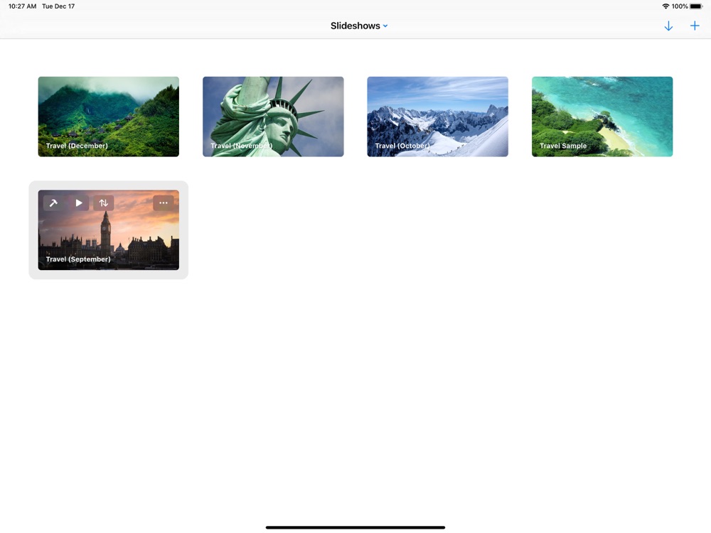 - Preview your slideshow as you build it, on your iPad or on an external screen.