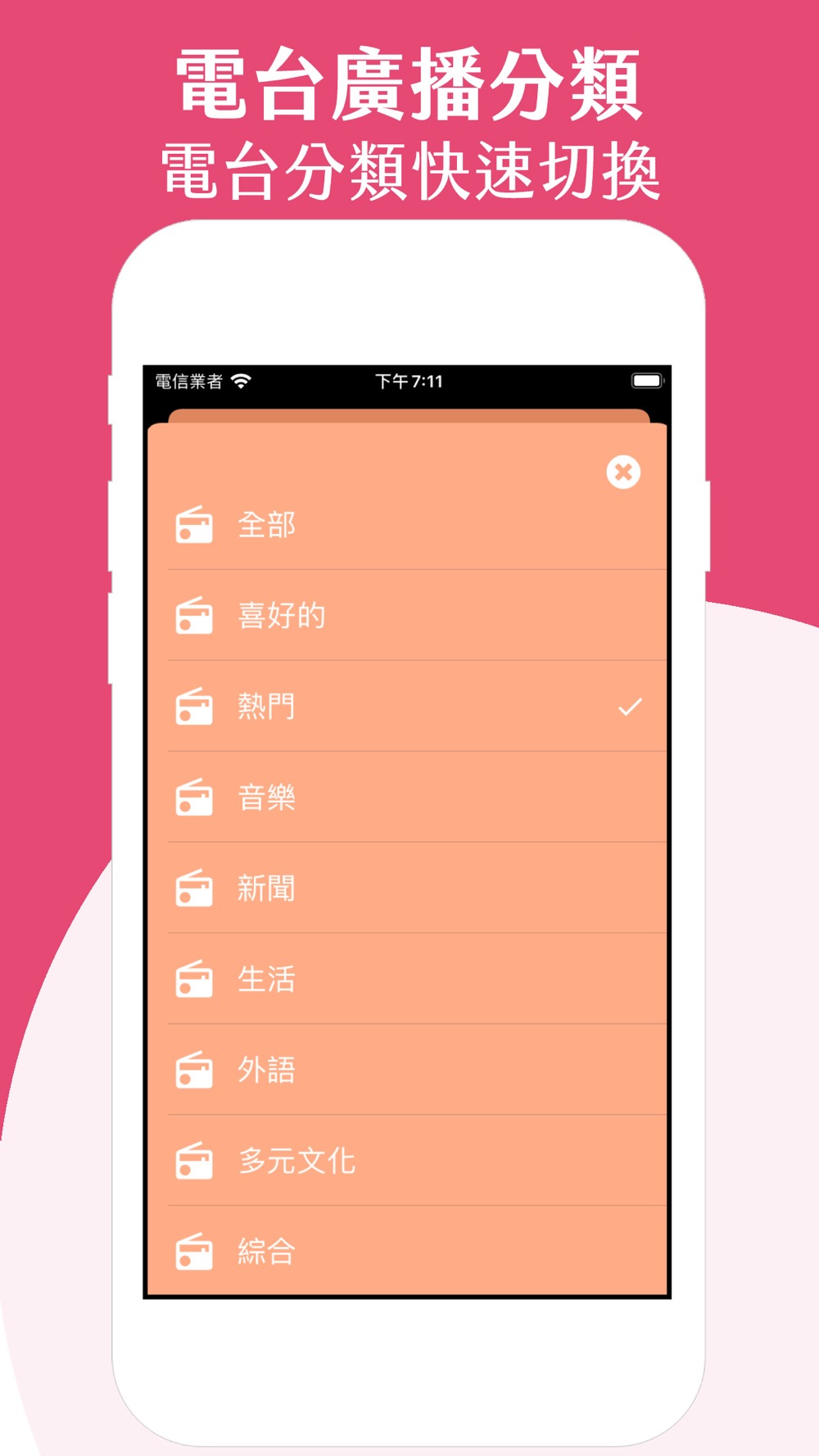 + 分類列出台灣電台,方便尋找,我的喜愛等功能。