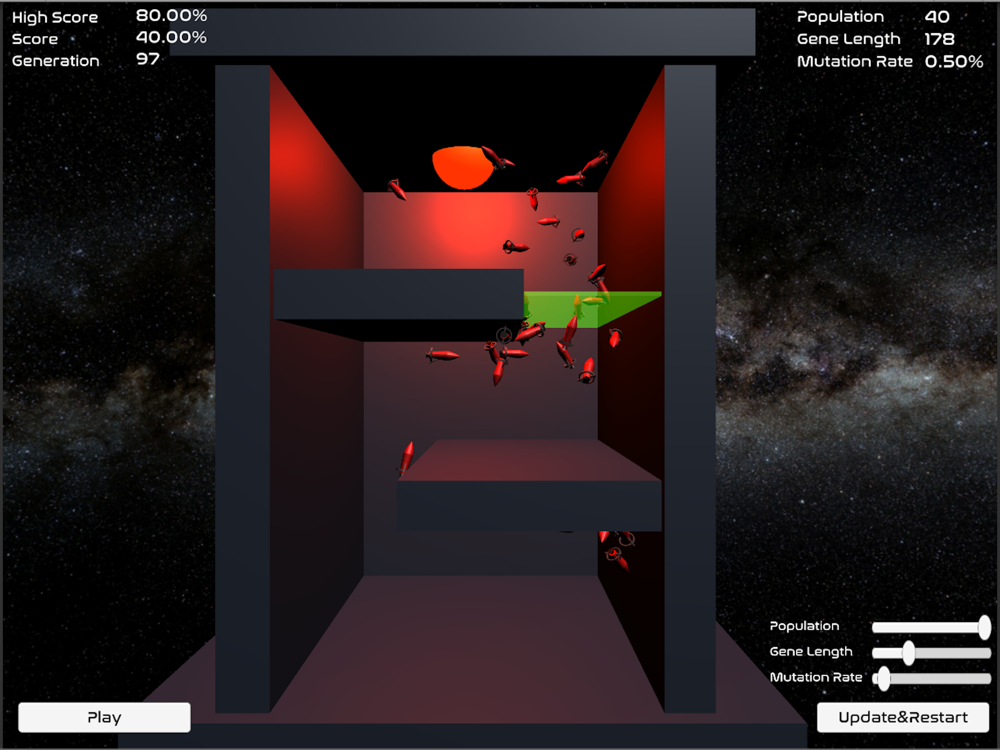 GeneSpace uses the Genetic Algorithm to simulate the evolution of rockest shooting on the target.