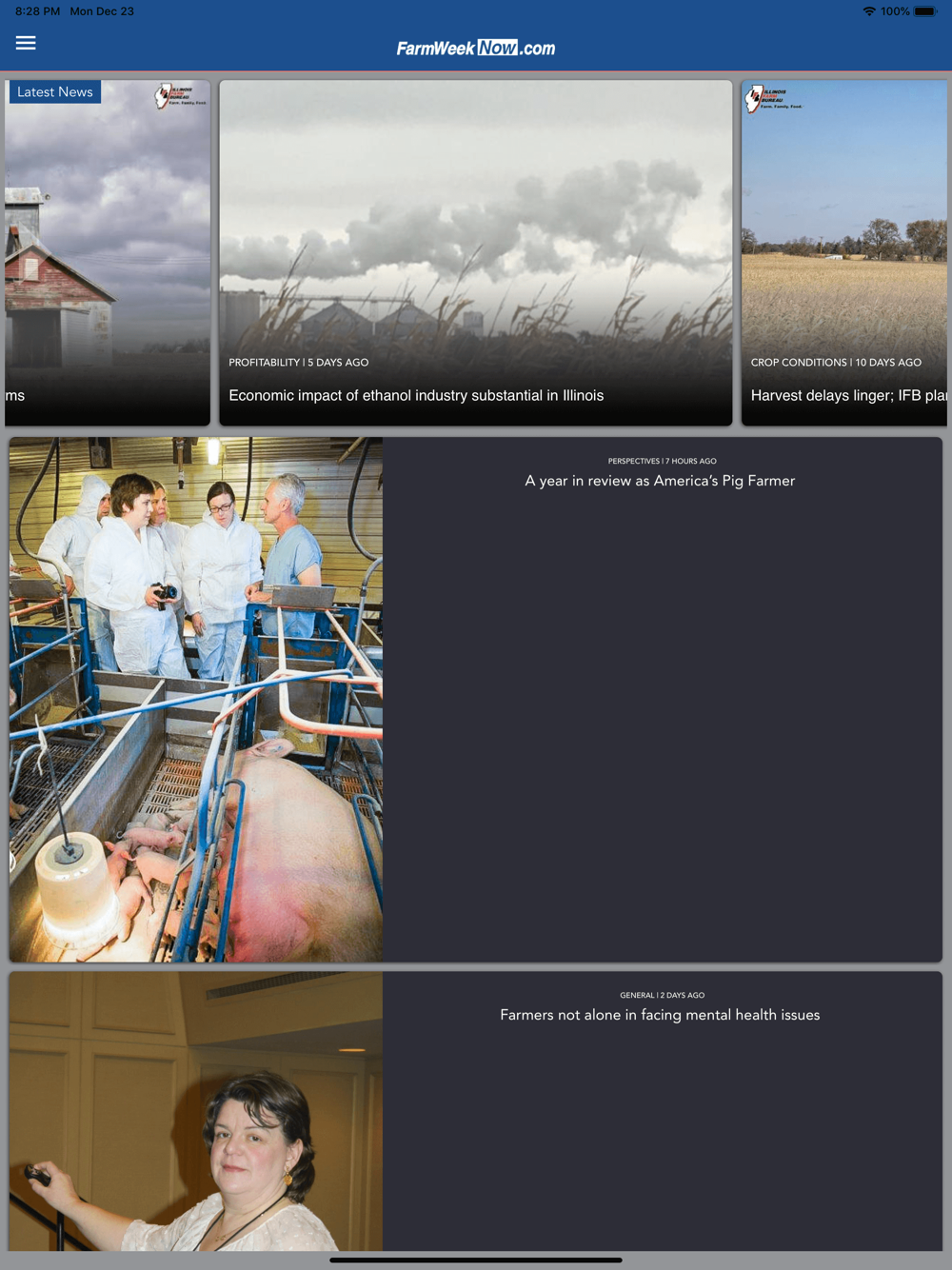 FarmWeekNow provides farmers with the latest information about Illinois agriculture from the staffs of FarmWeek, RFD Radio Network and Illinois Farm Bureau’s News and Communications division. App users will be able to receive the latest news, weather and price information tailored for Illinois farmers, plus the latest audio programming from the RFD Radio Network. In addition, ILFB (Illinois Farm Bureau) video releases can be viewed on the app, thanks to our affiliation with Brightcove and the American Farm Bureau Federation. FarmWeekNow provides the information that Illinois farmers need to be competitive in today’s agriculture.