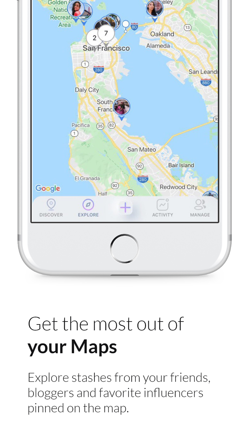 Create your own map: Stash adventures, experiences, and messages on the map and share your journey on the map with others.