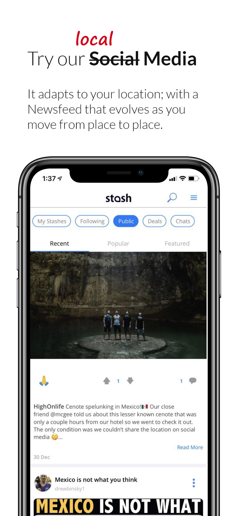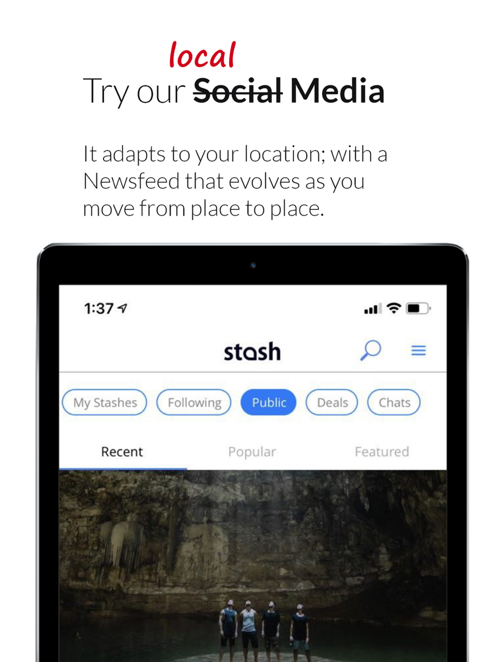 Stash is a localized social network that evolves as you move from place to place in your everyday life. Messages, pictures, and other media content posted are tagged to a location and are accessible to people around that location.