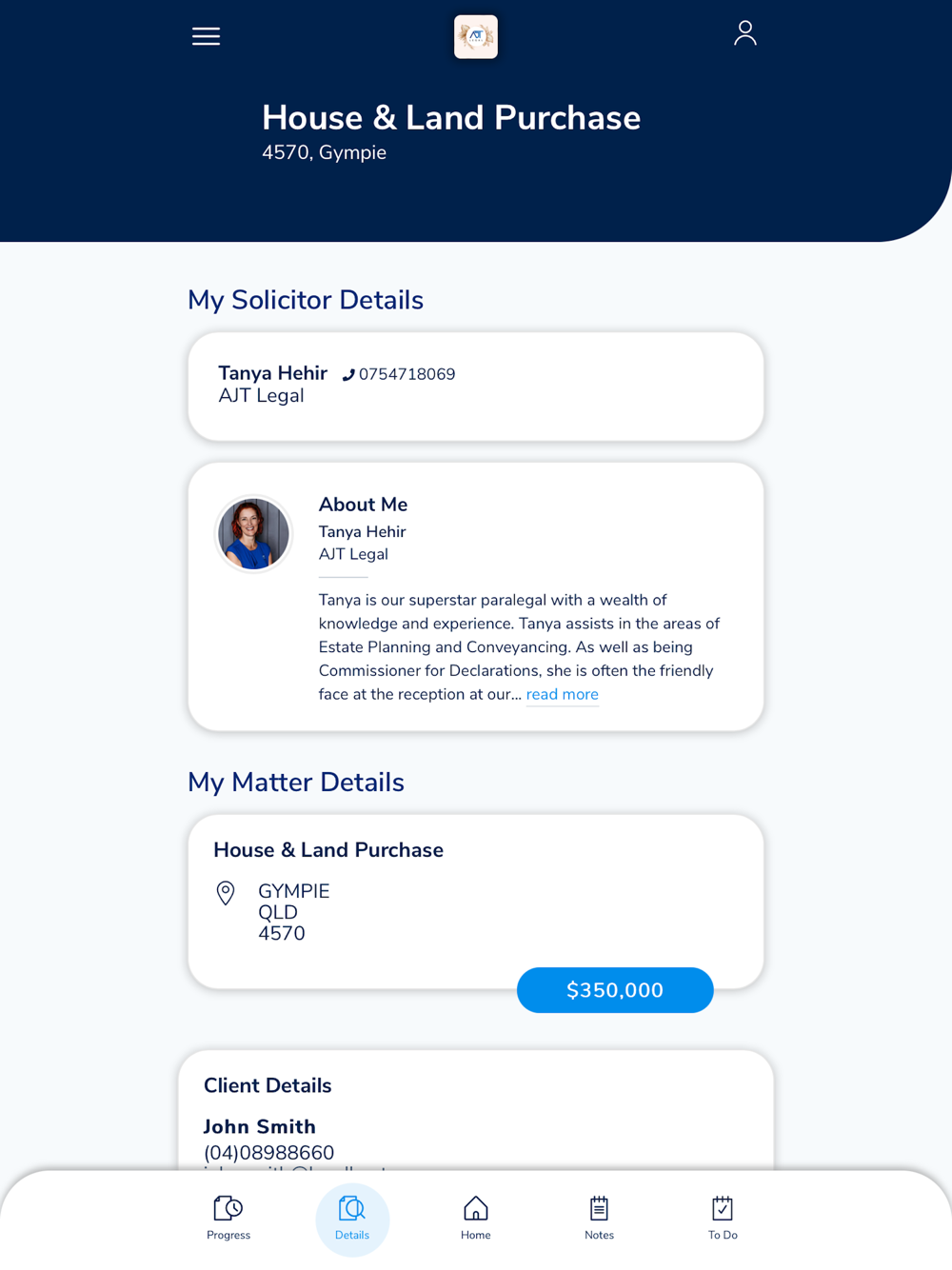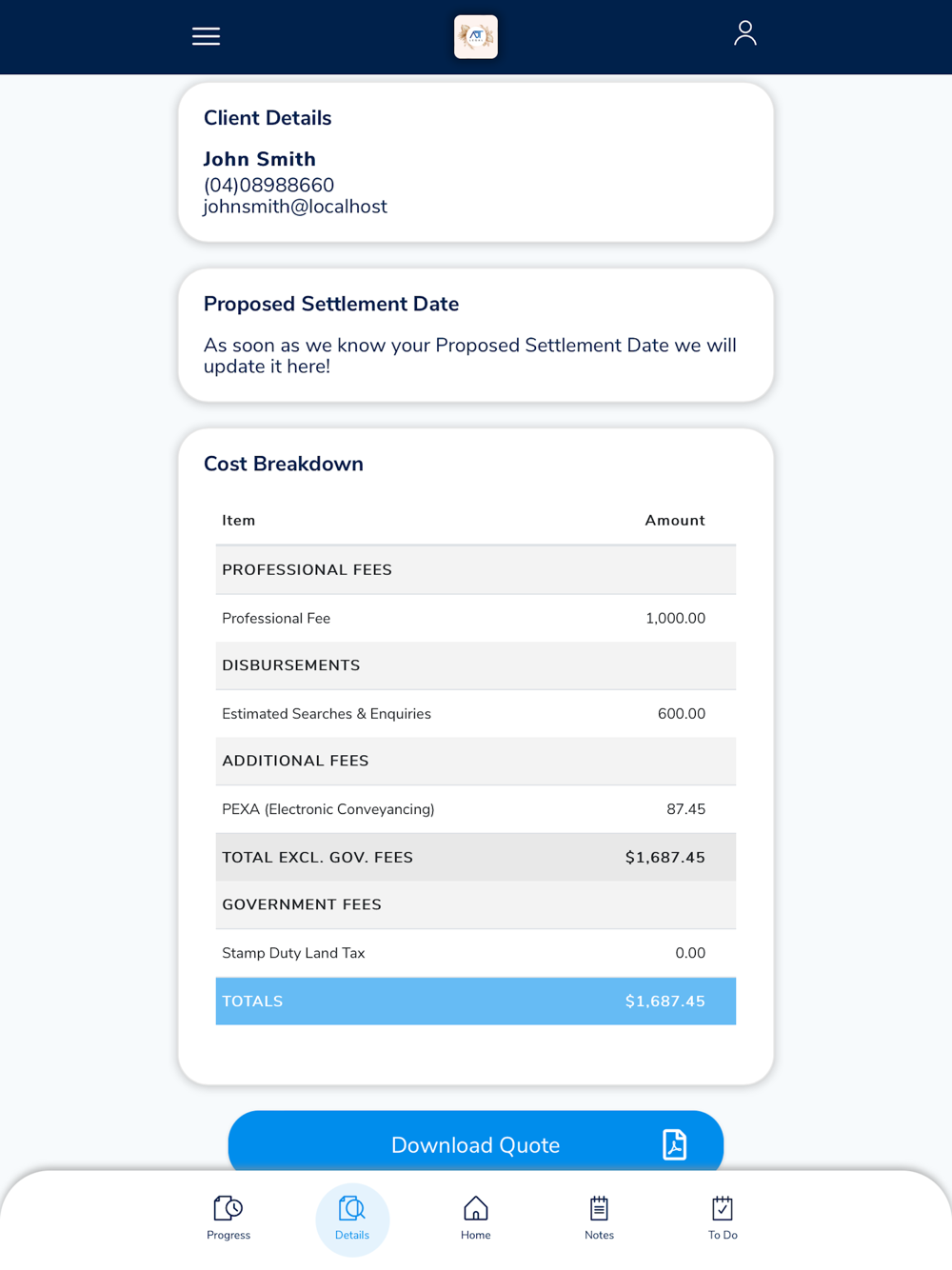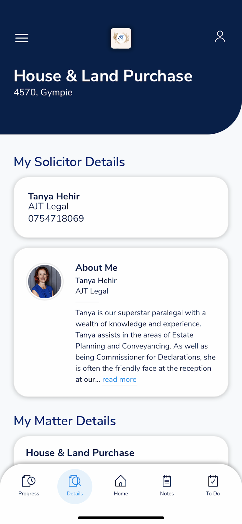With any legal service, you'll want visibility over the matter without having to pick up the phone! In a world of mobile devices, we now expect the ability to review progress at a time that is convenient to us. This app has been designed with features that keep you updated by providing live matter information. Whether you simply want to check the quote or if you wish to keep track of progress, this is the app for you. You'll be able to clearly see each step in the legal matter so you understand the process.