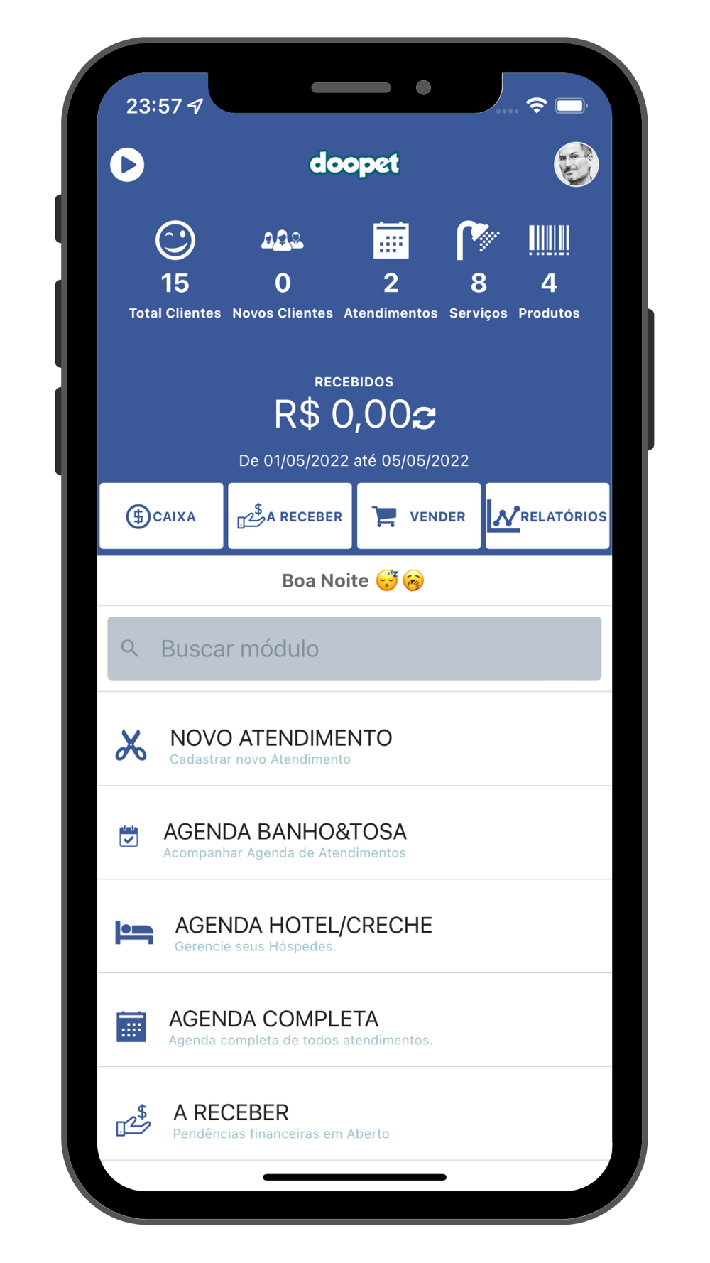 Com o Doopet você poderá gerenciar de forma eficiente seus atendimentos do banho & tosa, gerenciar por completo suas vendas de produtos, controle financeiro, etc.