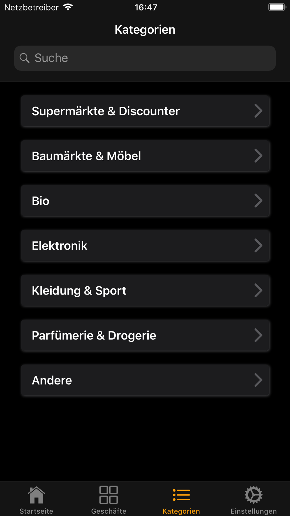 Unter Einstellungen können Sie Ihre Lieblingsgeschäfte festlegen und speichern. Ihre favorisierten Geschäfte werden immer am Anfang der Liste angezeigt, weitere Geschäfte werden unter den Favoriten aufgeführt.