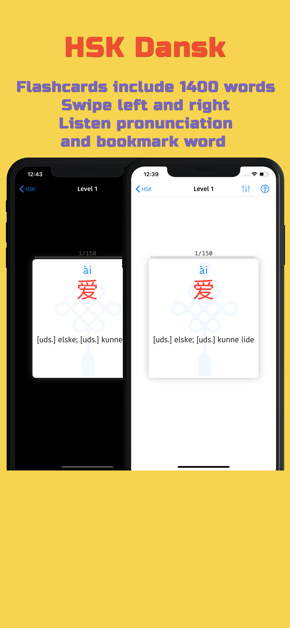 • Flashcards of all levels with word pronunciation